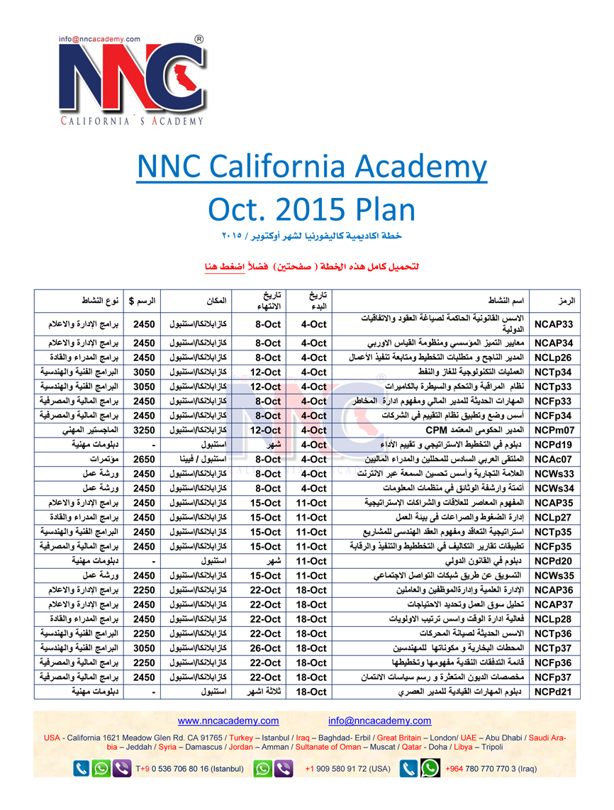 البرامج التدريبية لشهر اكتوبر 2015